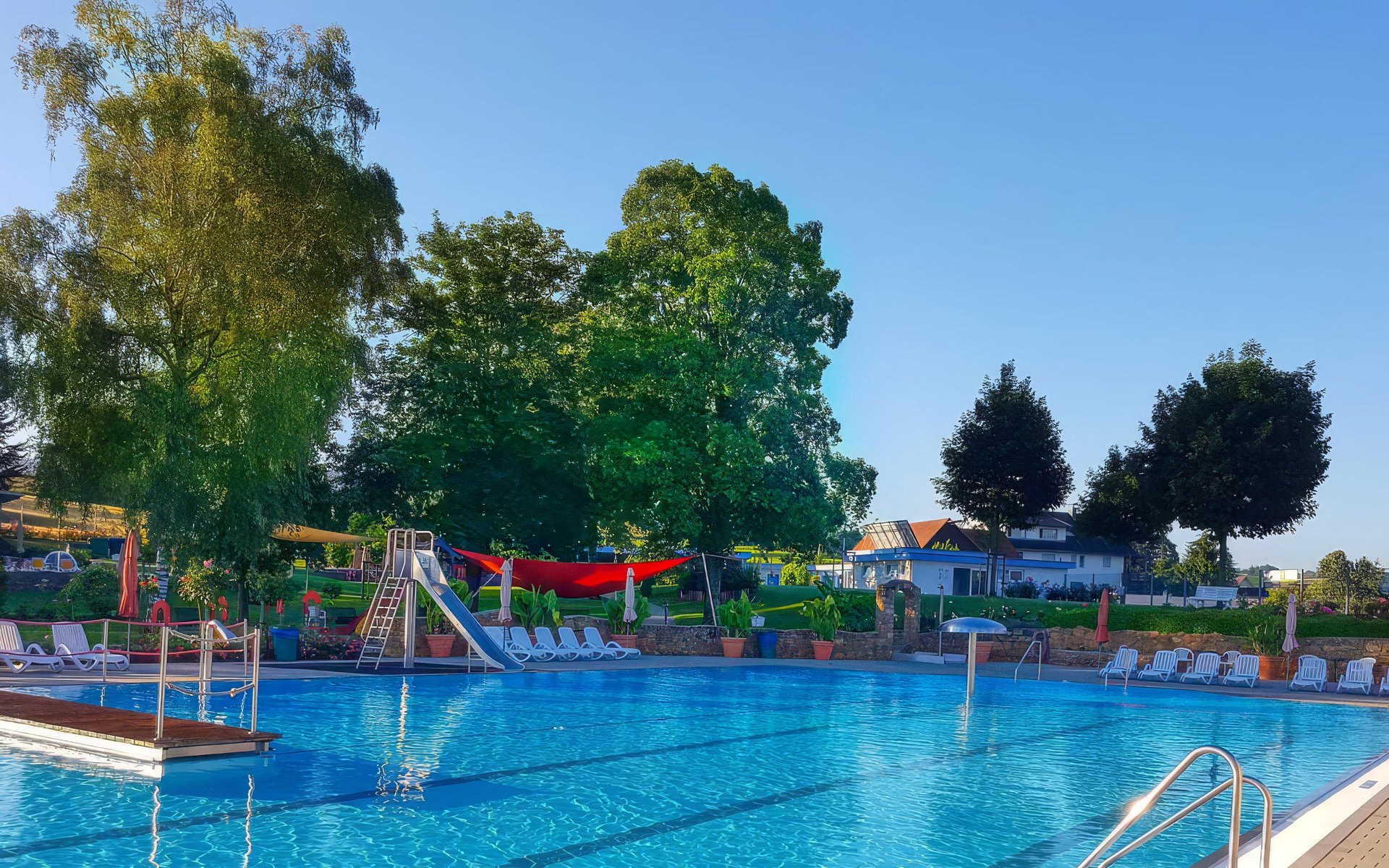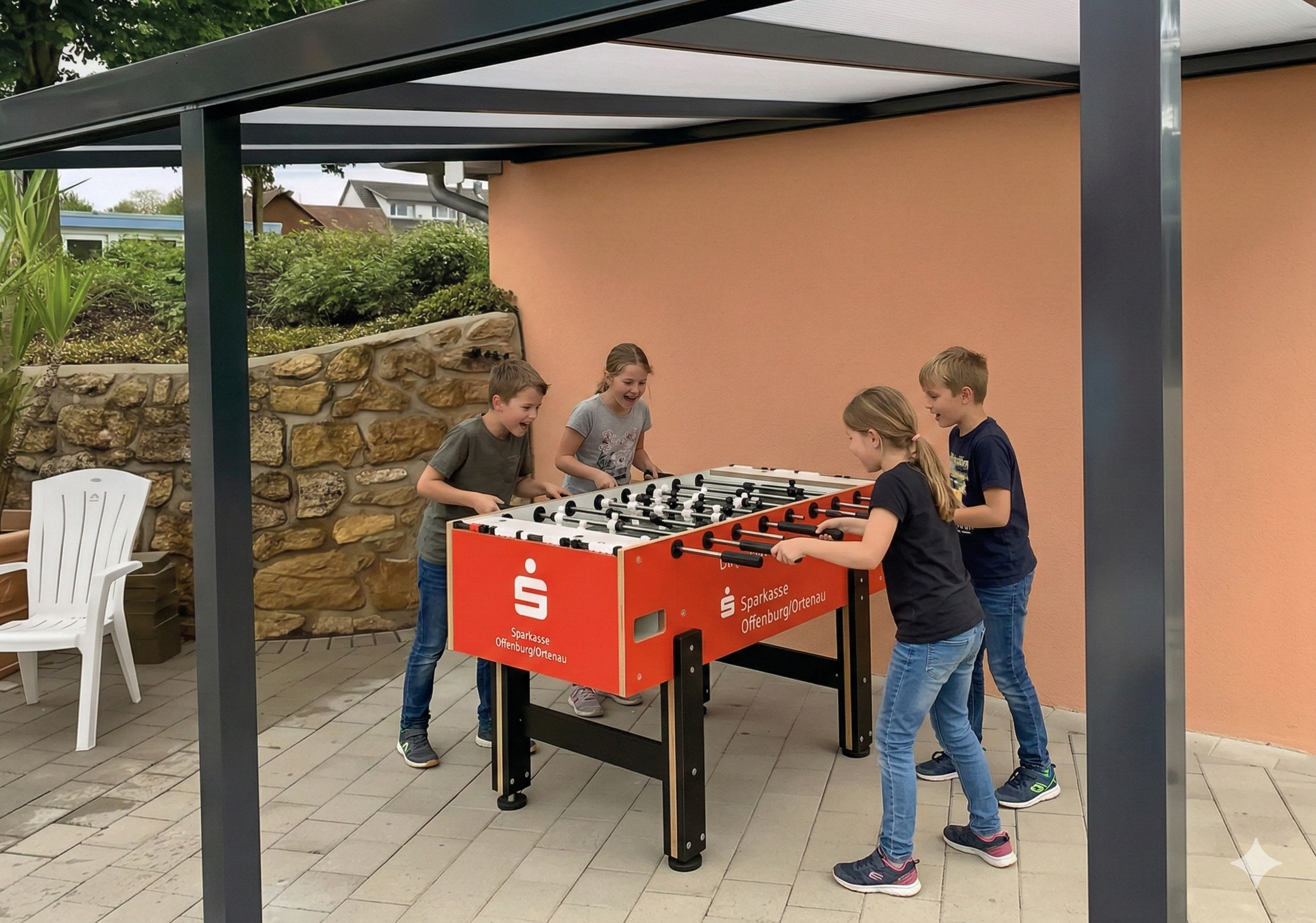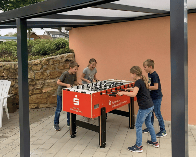 WAS WIR GEMEINSAM BEWEGEN: Ob geschützter Badespaß unter dem großen Sonnensegel, fröhliches Klettern auf dem neuen Holzspielplatz oder spannende Matches am überdachten Tischkicker – hinter jedem dieser Extras steht der Zusammenhalt unserer Gemeinschaft.